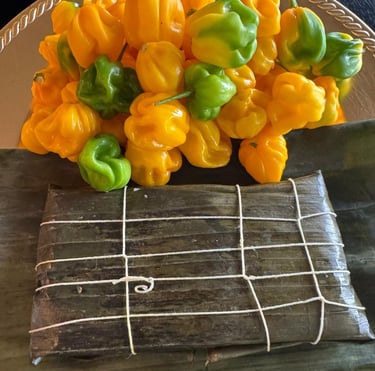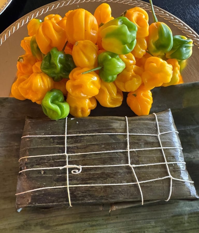 Hallacas hechas con Ajies venezolanos y vegetales de nuestro jardín.